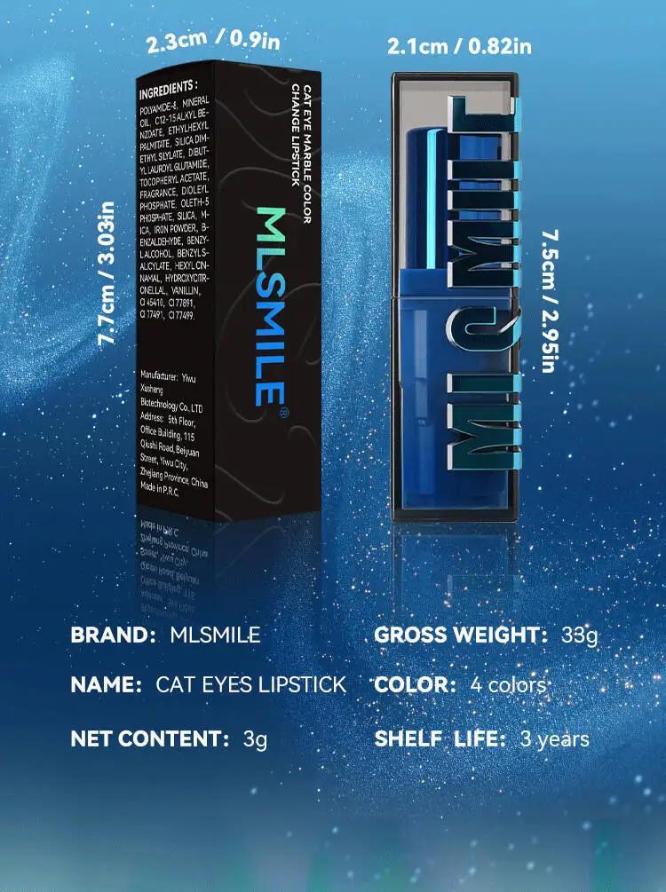 MLSMILE New Upgrade Cat Eye Temperature Change Thousands Of Colors Fine Glitter Non-Stick Cup Color Changing Lipstick
