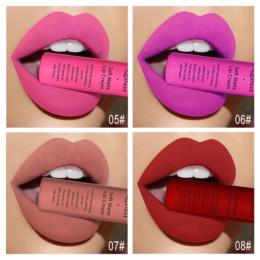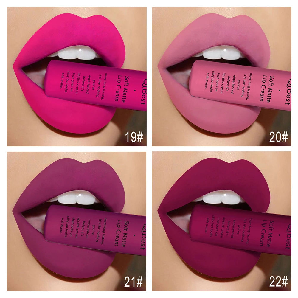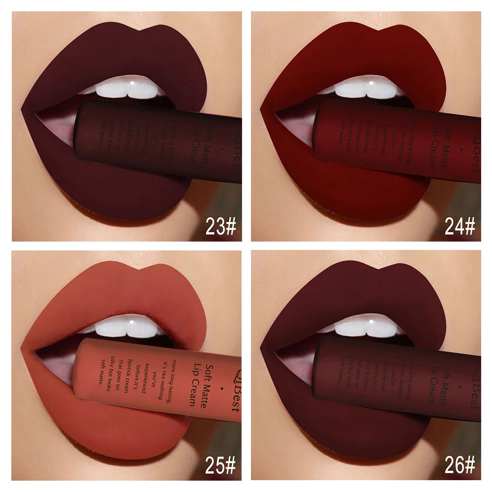 QIBEST Sexy Velvet Matte Lip Gloss Liquid Lipstick Lipgloss Beauty Red Nude Waterproof Long-lasting Lip Stain Makeup For Women