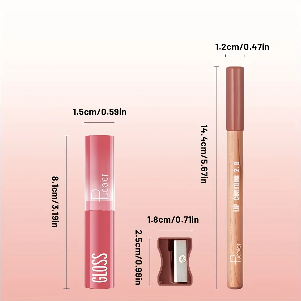 3pc Long-Lasting Lip Liner Lipstick Set - Creamy Texture, Complimentary Pencil Sharpener, Easy to Apply, lip gloss