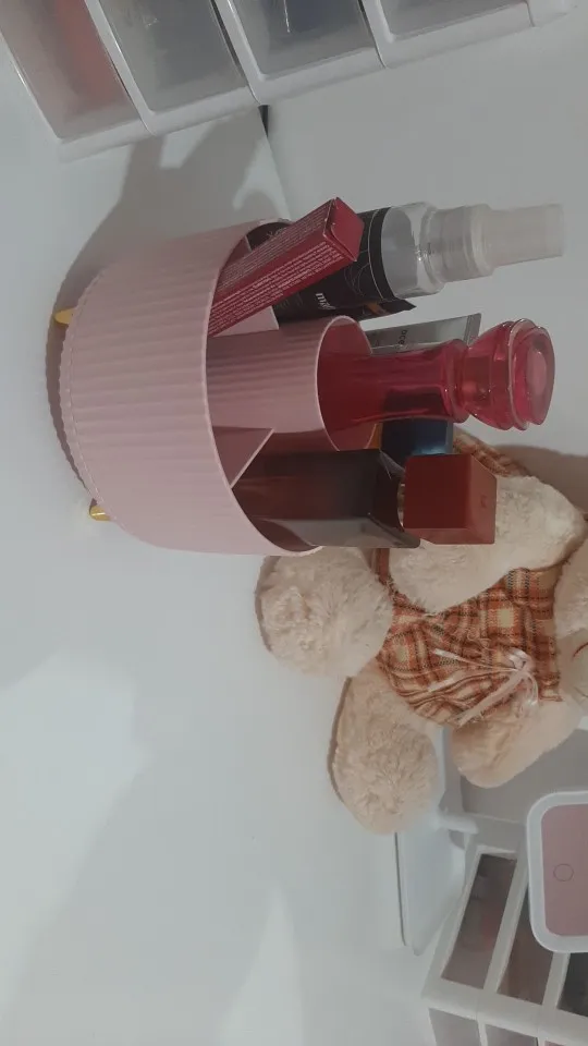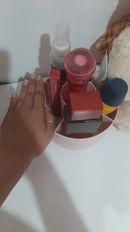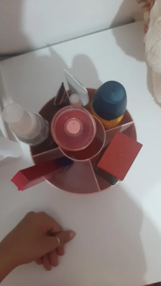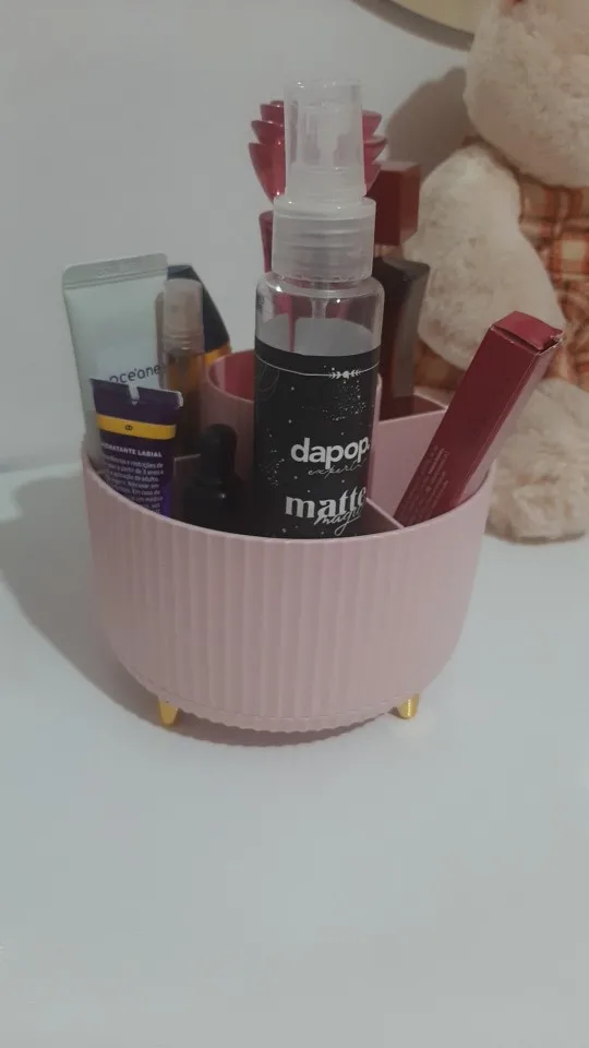 It's very beautiful and cute, but it's smaller than I expected. The dividers don't allow you to put anything bulky; everything has to be thin and slim. It rotates perfectly, a beautiful pink color, I loved it so much, but the Brazilian postal service takes forever to deliver.