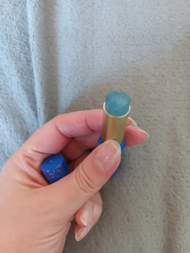 Item was flat/not slanted like in pictures. Very hard to see any inclusions, did not change lip color with temp. Very little product in container.